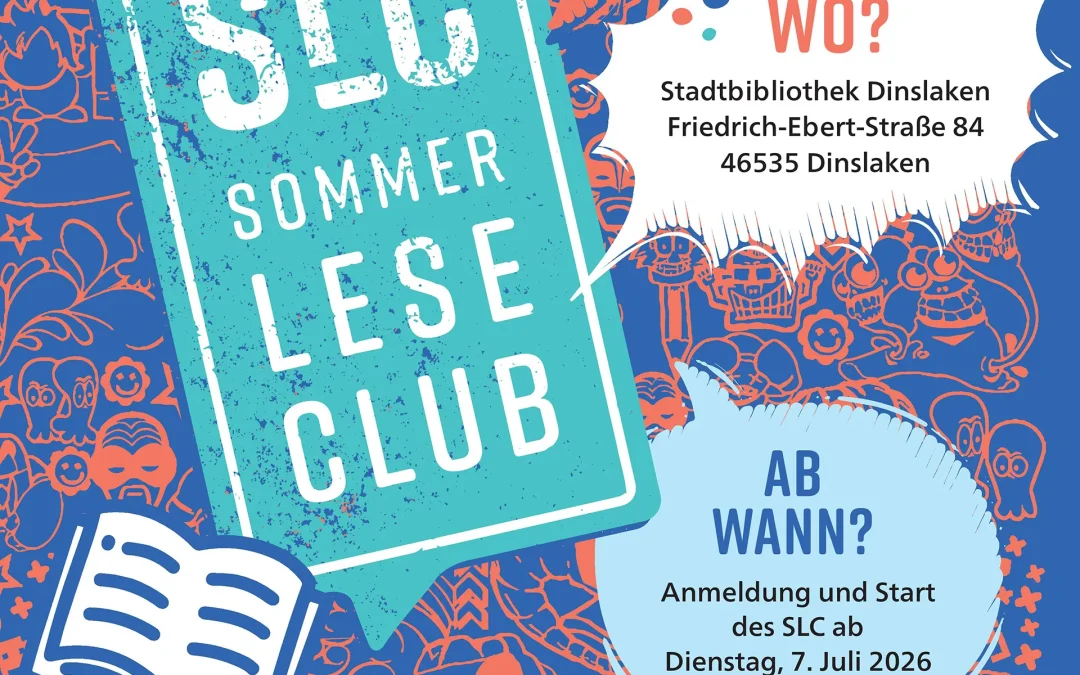 Sommerleseclub – Anmeldung und Start 7 Juli, 2026 Kinder- & Jugendbibliothek DinslakenFriedrich-Ebert-Straße 84Dinslaken, Nordrhein-Westfalen 46535Veranstaltungsort anschauenKarte Kinder- & Jugendbibliothek Dinslaken iCal Google Kompletten Kalender ansehen