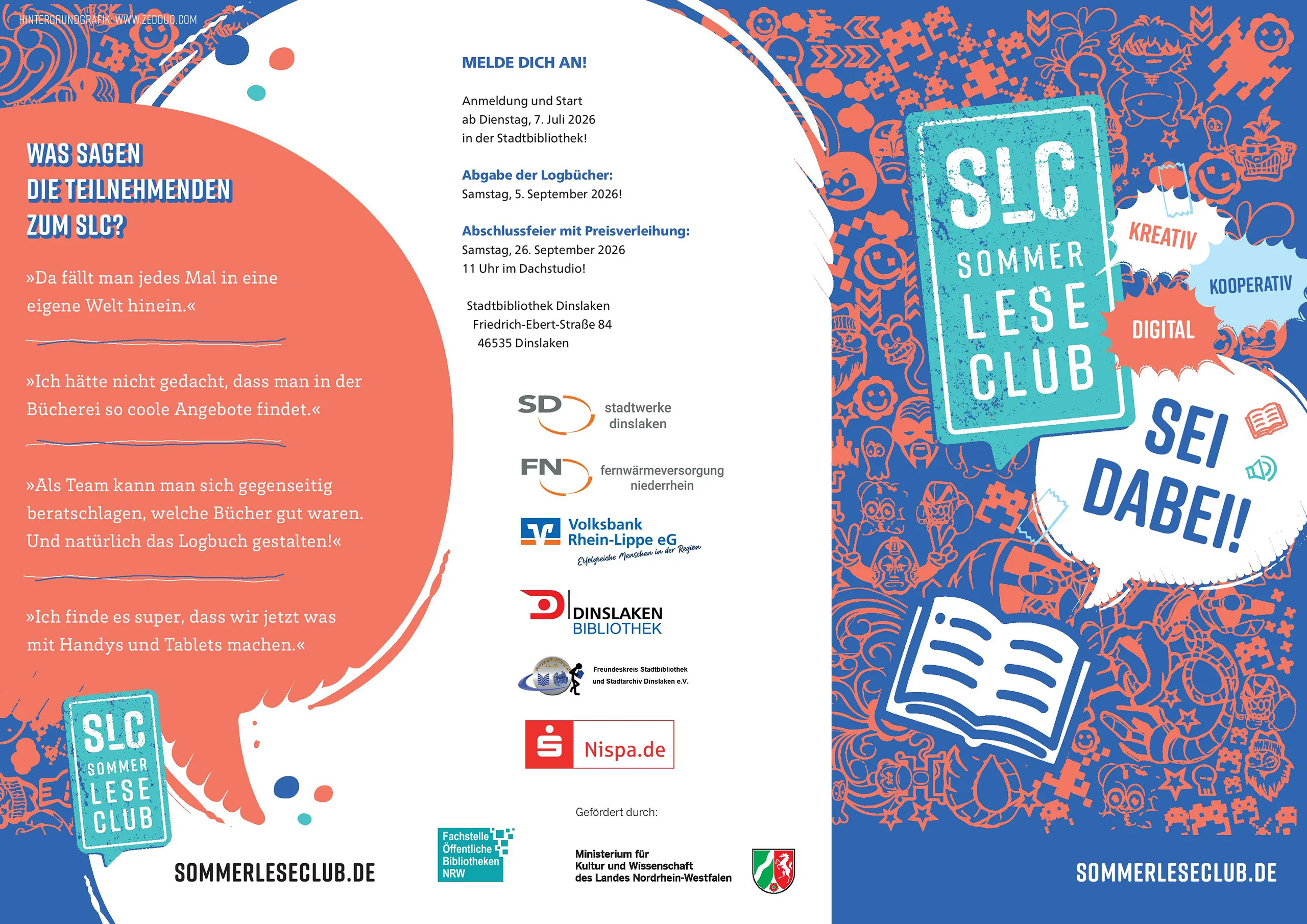 In unseren Rückblicken auf die vergangenen Sommerleseclubs des Freundeskreis Stadtbibliothek und Stadtarchiv Dinslaken e.V. finden Sie eine Zusammenfassung der jeweiligen Veranstaltung. Jedes Jahr berichten wir über die rege Teilnahme und besondere Leistungen und Events. Die Bilder und Berichte vermitteln die einzigartige Atmosphäre und das Engagement der Leser*innen, die den Sommerleseclub zu einem festen Bestandteil des kulturellen Lebens in und um Dinslaken machen.